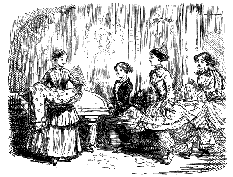 Harriet. "WHY, I DON'T KNOW WHETHER TO HAVE MY NEW MERINO FROCK VIOLET OR DARK BLUE!"