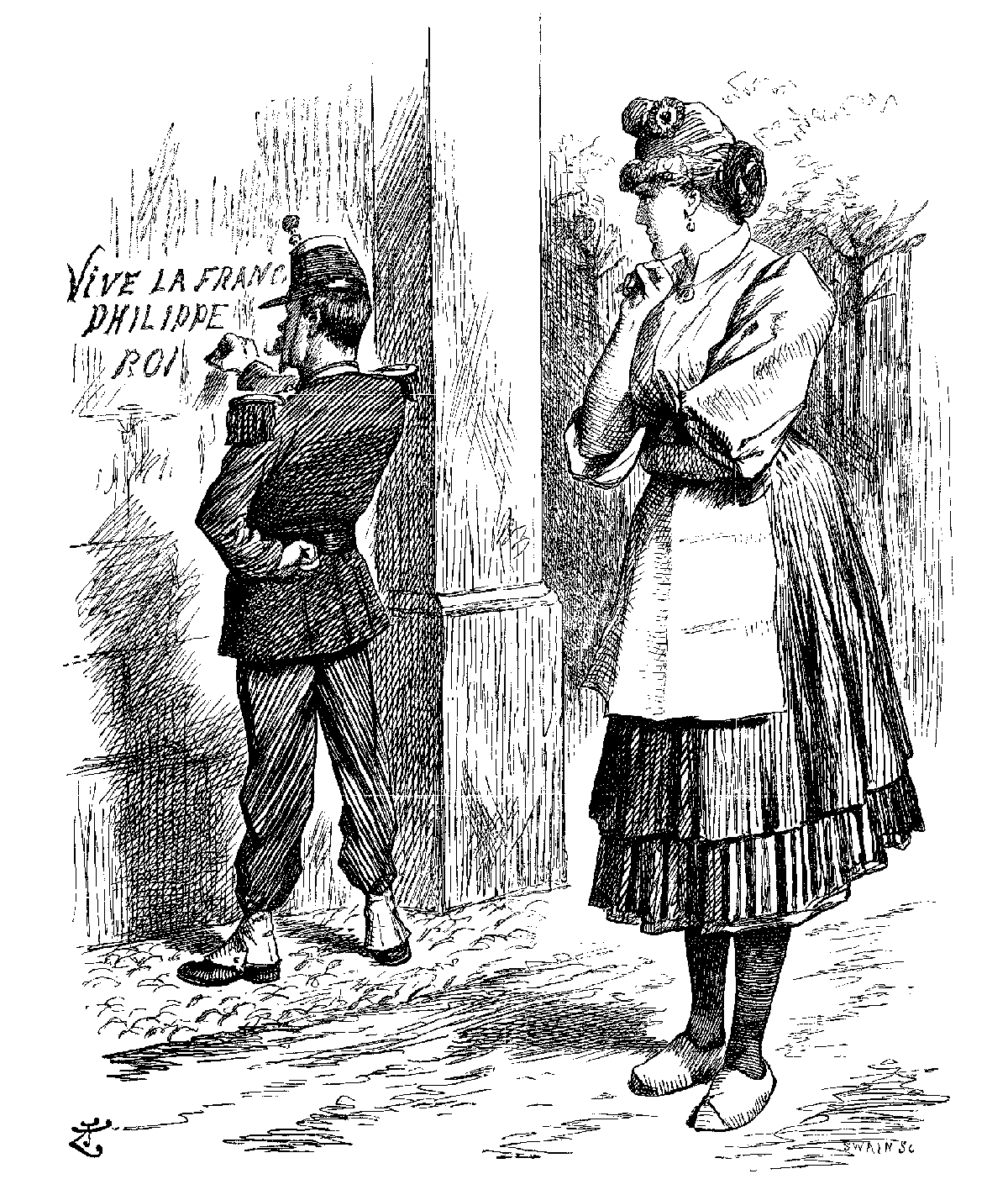 Miss Stick, (flattered). Well, I've always said, Mossoo, and I always will say, that for polite 'abits and pretty speeches, give me a Frenchman!