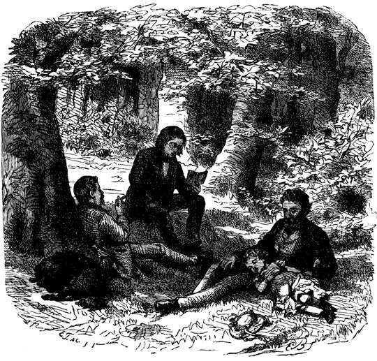 „Diese Wildfänge!“ seufzt die Tante Helene, auf eine Bank sinkend; während ich Taschentuch, Arbeitskörbchen und umherrollende Äpfel, welches alles das Frauenzimmer, den Ausgang ihres Attentats vorhersehend, sogleich zu Boden geworfen hat, aufsuche, wie es einem guten Onkel und Vormund geziemt. „Hören Sie nur, wie das Mädchen kreischt!“