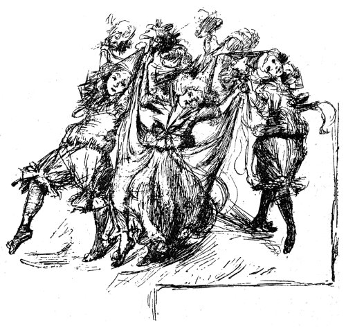 Her would-be suitors being in this way gathered together, the Princess would throw into the air a golden apple, and whoever succeeded in catching it would then have to resolve three problems, after doing which he might marry the Princess, and, the King having no son, inherit the kingdom.