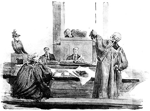On the following day the court was crowded to excess, and it was rumoured amongst the many ladies and gentlemen of position who were present that a majority of the judges were so thoroughly convinced of the preposterous character of the President du Bourg's claim as to render certain a decree in favour of Captain de Serres and his wife. Amidst a sympathetic silence—for popular opinion was almost unanimously enlisted on the side of the defendants in this unprecedented case—the President of the High Court commenced in a grave voice the delivery of the judgment, when suddenly M. du Bourg, who had not been present at the commencement of that day's proceedings, entered the court, leading by the hand a little girl of five or six summers. At this moment Madame de Serres, her face lighted up with a smile of exultation, was seated by the side of her advocate, directly in front of the Bench, and in full view of the public. Conversing in animated tones with her counsel, she did not observe the entrance of M. du Bourg; but in a moment a tiny hand was placed in her own, and a child's soft voice said timidly—