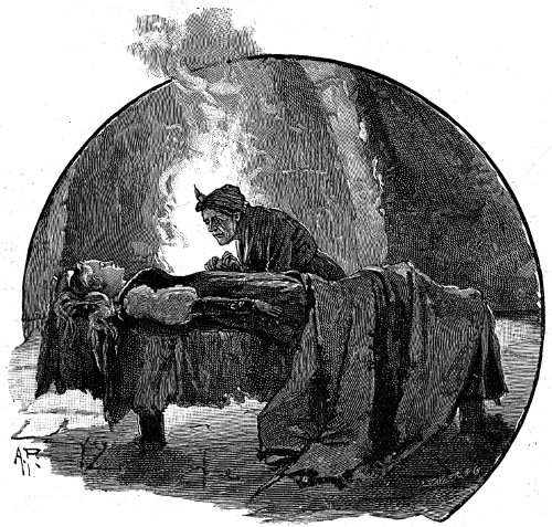 Seeing that pursuit was useless—even if[Pg 454] he had contemplated such a course—the poor man hastened to remove the evidence of the sacrilege in which he had played so prominent a part. Lowering the empty coffin into the open grave, he rapidly threw in the earth, and in a short time the spot showed no trace of having been disturbed since the interment of the preceding morning. Then the grave-digger gathered together the implements of his trade and stole back to his lodge, muttering imprecations upon his mad visitor, and upon himself for having assisted in committing a crime fraught with such formidable danger to its perpetrators, should the horrible deed ever be brought to light.