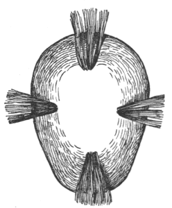 Thence they journeyed towards the Big Sioux River, where they made a fort. They remained in that country a long time, making earth lodges and cultivating fields. Game abounded. At that time the Yanktons dwelt in a densely wooded country near the head of the Mississippi; hence the Omahas called them, in those days, "Jan´aʇa ni´kacinga, The people who dwelt in the woods." After that the Yanktons removed and became known as Yanktons. By and by the Dakotas made war on the three tribes, and many Omahas were killed by them. So at last the three tribes went west and southwest to a lake near the head of Choteau Creek, Dakota Territory, now known as Lake Andes (?). There they cut the sacred pole (see §§ 36 and 153), and assigned to each gens and subgens its peculiar customs, such as the sacred pipe, sacred tents, and the taboos. There were a great many gentes in each tribe at that time, far more than they have at present; and these gentes were in existence long before they cut the sacred pole.