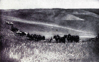 My journey next took me to Walla-Walla, largest and handsomest of all the East Washington towns. Doubtless the name of Walla-Walla brings no suggestion to the minds of most readers in the far-away East, save of a rude frontier settlement. Yet the place luxuriates in verdure and bloom, and many of its shady streets, bordered by pretty houses, with their lawns, orchards and gardens, would be admired in a New England village, while the business streets would do no discredit to an Ohio town of half a century's growth. In the homes of well-to-do citizens one finds the magazines and new books and newspapers from New York, Boston and Philadelphia, and discovers that they manage to keep abreast of the ideas of the time quite as well as intelligent people on the Atlantic slope. The town has five thousand inhabitants, but in its importance as a center of trade and social influences it represents an Eastern town of many times its size. There is barely a trace of the frontier in the manners of the people, and none at all in their comfortable way of living; yet they are thousands of miles from New York by the only route of steam travel. A fairer or more fertile country than that which stretches south and east of Walla-Walla to the base of the Blue Mountains one might travel more than five thousand miles to find. In June it is all one immense[213] rolling field of wheat and barley dotted at long intervals—for the farms are large—with neat houses, each in its orchard of apple and peach trees. The mountains rise in gentle slopes to snow-flecked summits. Over the wide plain move tall, tawny cloud-like columns of dust, in size and shape like water-spouts at sea. From the foot-hills scores of these singular formations may be seen on any warm day, though the air seems still.