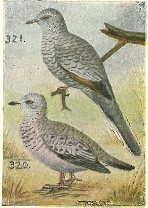 Family Columbidæ:—Bill slender, hard at the tip, and with the nostrils opening in a fleshy membrane at the base. Plumage soft grays and browns.