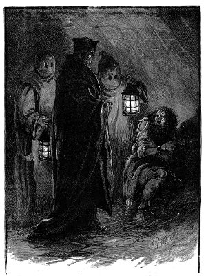 But, oh! steps sounding again; steps, this time, slower, more sombre. The forms of[Pg 561] two Inquisitors, robed in black and white, and wearing their large hats with rounded brims, emerged into the faint light. They talked in low voices, and seemed to be in controversy on some important point, for their hands gesticulated.