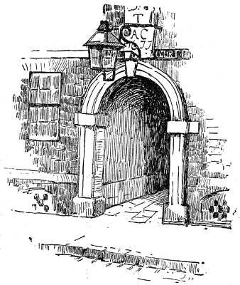 By means of a sort of livid obscurity he distinguished, first of all, a half-circle of earthy walls, pierced by spiral stairways, and, opposite to him, five or six stone steps, dominated by a sort of black porch, giving access to a vast corridor, of which he could only see, from below, the nearest arches.