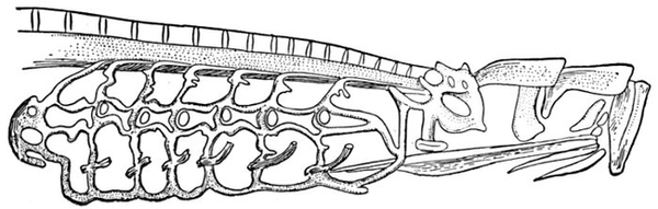 [166] The abbreviated mode of development of the fins is most interesting; from the earliest stage they assume outwardly the archipterygial form; the retarded development of the limbs seems curiously amphibian-like; the pectorals do not properly appear until about the third week, the ventrals not until after the tenth.