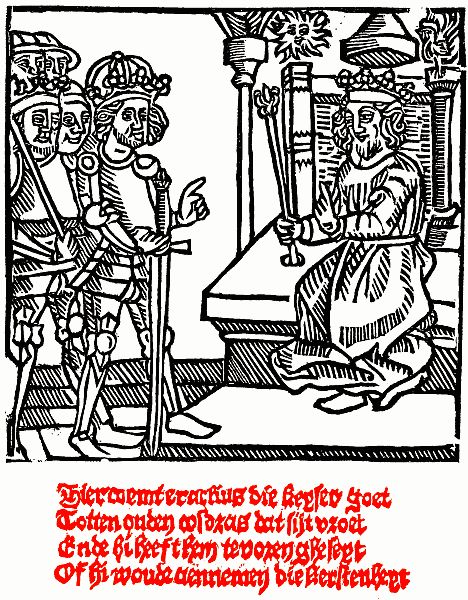 “Yet there is a greater combat of the nayles. I wyll recite them only that are come to my knowledge. Thereupon there is not so lytle a childe but wyll judge that the Devyll hath to much deluded the worlde in takyng from it both understandyng and reason, that it coulde discerne nothynge in this matter. If the[lxxxix] auncient writers saye trewe, and namely Theodorite Historiographer of the auncient churche, Helene caused one to be nayled on her sonne’s helmet, the other two she put in his horse bitte. How be it Sainct Ambrose sayeth not fully so. For he sayeth that one was put in Constantine’s crowne, of the other his horsebit was made, and the thirde Helene kept. Wee se yt already more than twelve hundred yeres agone this hath bene in controversie, to wit, what was become of the nayles. What certentie can be had of them then at this present time?