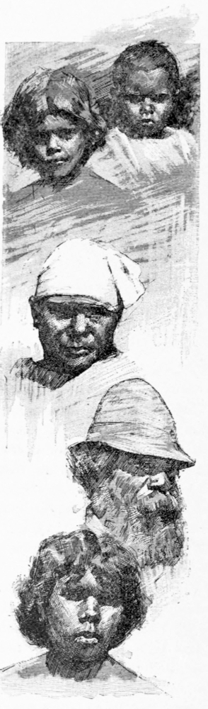 This extraordinary faculty of following a trail is characteristic of all the Australian blacks. It was remarkably illustrated in a Queensland case, where a man was missing who was supposed to have been murdered, and whose remains were discovered by the black trackers. An aged shepherd, who had long served on a certain station, was at last sent off with a considerable sum, arrears of pay. He started down country, but was never heard of again. Various suspicious reports started a belief that he had been the victim of foul play. The police were called in, and proceeded to make a thorough search, assisted by several blacks, who usually hang about the station loafing. But they lost their native indolence when there was tracking to be done. Now they were roused to keenest excitement, and entered eagerly into the work, jabbering and gesticulating, with flashing eyes. No one, to look at these eyes,{26} generally dull and bleary, could imagine that they possessed such visual powers, or that their owners were so shrewdly observant.