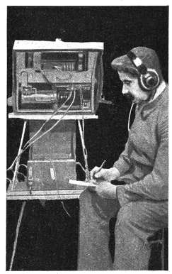 „Keine Meldung vom Schiff?“ fragte der Kapitän, sich ans Steuer begebend, und gerade, als er fragte, kam ein zuckendes, blitzartiges Aufleuchten und ein metallisches Knistern von dem Telephonapparat zu seinen Füßen. Er nahm den kombinierten Reciver und Transmitter sofort auf und befestigt ihn an seinem Kopfe.