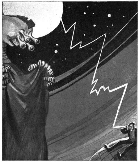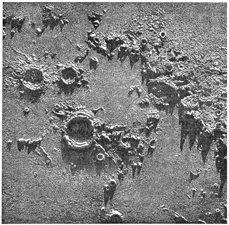 Bei Nacht würden die großen, den Kometen begleitenden Massen auf der der Sonne zugekehrten Seite gleich poliertem Silber erglänzen, während man den unbeleuchteten Teil nur eben so schwach sehen würde, wie man beim zu- und abnehmenden Mond den unbeleuchteten Teil dieses unseres Trabanten zu sehen vermag. Ein geisterhaft phosphoreszierendes Licht würde alle diese Körper umhüllen und sie zu einem schauerlich schönen, unheimlich hypnotisierenden Anblick machen.