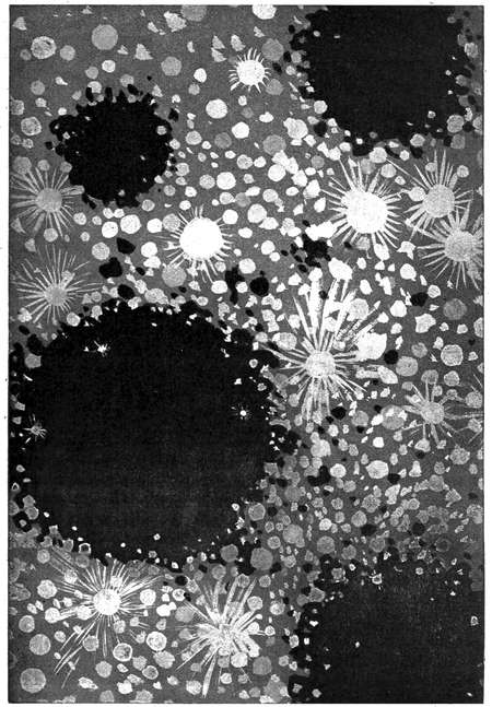 Es ist schon erwähnt worden, daß der Weg der Erde und der Sonne von einer Seite der Milchstraße zur andern geht. Gegenwärtig geht die Richtung nicht ganz gerade jenem Teil der Milchstraße entgegen, der über uns liegt. Aber auch diese Richtung kann sich noch hinreichend ändern, um uns statt in den Nebel des Herkules, direkt in die Milchstraße hineinzuführen. Ja, wir könnten möglicherweise mitten durch sie hindurch gehen. In diesem scheinbaren Sternenwall gibt es nämlich breite Oeffnungen, durch die wir in die Unendlichkeit des Weltenraumes scheinbar hineinsehen können, in diese dunkle Nacht, die die sichtbaren Sternensysteme umgibt, und in diese dunkle Nacht hinein könnten wir in unserem Fluge entführt werden, wenn unser Sonnensystem durch eine dieser Oeffnungen hindurch kann. An einigen Stellen ist die Milchstraße förmlich mit solchen Oeffnungen durchsetzt, wie ein mit Sternen besäter Vorhang, durch den man mit einem Maschinengewehr geschossen hat. Photographien dieser Oeffnungen zeigen uns die Sterne in funkelnder Menge, rund um sie her glimmernd und glitzernd, während durch die Oeffnung hindurch nicht ein einziger Stern zu sehen ist. Und der Blick geht durch sie hindurch, wie durch ein Fenster, durch welches nicht der geringste Lichtfleck hineinfällt. Es ist, als blicke man aus einem hellen Raum durch eine offene Tür in die vollkommen schwarze, dunkle, sternen- und mondlose Nacht. Es ist der furchtbare, bodenlose Abgrund des Nichts, der unser Sternensystem umgibt, und in diesen Abgrund hinein, würden wir stürzen. Gesetzt den Fall, daß unser Sonnensystem wirklich durch einen dieser mächtigen Zwischenräume zwischen den Sternen der Milchstraße hindurchgeht, so könnten die Folgen dieses Ereignisses zweierlei sein. Wenn wirklich dieser kosmische Abgrund endlos und bodenlos ist, und wirklich jenseits nichts anderes liegt, als das Nichts selber, dann könnte möglicherweise die vereinte Anziehungskraft der ganzen Gesamtheit der Sterne genügen, um uns zurückzuhalten und zurückzubringen, so daß wir wieder mit unserer Sonne ein Teil jenes Systems würden, das wir zu verlassen versucht hatten. Wenn aber, wie von den meisten wohl angenommen wird, jenseits der großen Leere und des großen Nichts andere, für uns der großen Entfernung wegen unsichtbare Weltenalls liegen, dann würden wir zweifellos die Anziehungskraft jener Welten fühlen und ihnen Folge leisten müssen, und dann würde jene Welt die unsere werden.