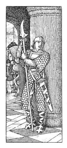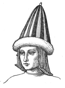 [22] The above story was told to the knight by a lady of his acquaintance who was an eye-witness of the event. We give here Caxton's version:—"For her clothyng and araye was different and no thyng lyke to theyr, and therefore she had wel her part beholdyng and lokyng. Thenne said the good ladyes to her, 'My frende, telle ye us, yf it please yow, how ye name that aray that ye have on your heed?' She answerde and saide, 'The galhows aray.' 'God bless us,' said the good lady, 'the name of hit is not faire.'... 'As ferre as I me remembre of it,' continued the knight's informant, 'hit was highe culewed with longe pynnes of sylver uppon her hede, after the makynge and maner of a gybet or galhows, right straunge and merveylous to se.'"