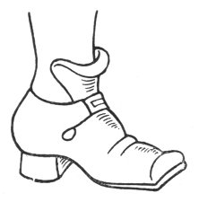 Bulwer's "Pedigree of the English Gallant" says: "In the reign of Queen Mary, the people in general had laid aside the long points they formerly wore at the end of their shoes, and caused them to be made square at the toes, with so much addition to the breadth, that their feet exhibited a much more preposterous appearance than they had done in the former instance; therefore," says the author, "a proclamation was made, that no man should wear his shoes above six inches square at the toes." He then tells us that "picked shoes soon after came again in vogue, but they did not, I presume, continue any great time in use."