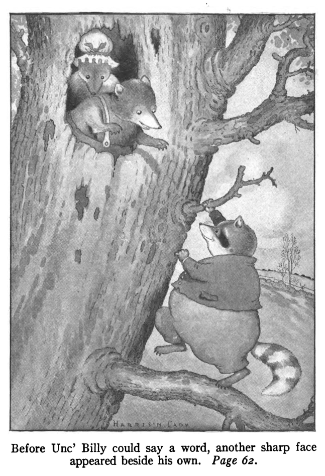 POOR, poor Bobby Coon. Now he was sure that he was really and truly awake, he almost wished that he hadn't tried to find out. It would have been some little comfort to have been able to keep his first feeling that maybe it was all a bad dream. But now that he knew positively he was awake, he knew that this terrible pounding, which at first had been part of that bad dream, was also real. The truth is, he could no longer doubt that something terrible was happening to his house, the big hollow chestnut-tree he had lived in so long.