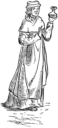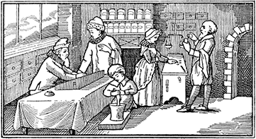 The great satirist, in Pendennis, gives us a brief sketch of the apothecary of the Georgian era in the early life of John Pendennis, who in the city of Bath practised as an apothecary and surgeon, “attending gentlemen in their sickrooms, and ladies at the most interesting periods of their lives, and condescending to sell a brown-paper plaister to a farmer’s wife across the counter, or to vend tooth-brushes, hair-powder,[328] and London perfumery”. How he eventually merged into John Pendennis, Esq., of Fairoaks, Clavering, with a “family pride,” is it not described with the pen of inimitable genius in the pages of the story?