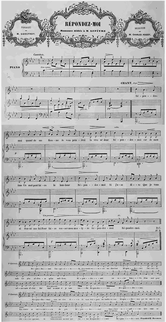 Courrier de Paris. Fête donnée par S. M. Louis-Philippe aux Exposants, dans la Salle de spectacle de Versailles.--Embellissement de Paris. Nouveaux percements de voies publiques. Trois Gravures.--Histoire de la Semaine. Portrait du duc d'Angoulème d'après sir Thomas Lawrence.--Répondez-moi. Romance. Paroles de M. Godefroy; musique de M. Charles Puisot.--Les Chemins de fer. L'État, les Compagnies.--Algérie. Investiture d'un khalifah; Embarquement de troupes, d'après un dessin original de M. Letuaire.--Un voyage au long cours à travers la France et la Navarre. Récit philosophique, sentimental et pittoresque, par Albert Aubert. Chap. I et 11. Sept Gravures, par Bertall.--Exposition des Produits de l'Industrie. (Septième article). Tissus et Poterie. Métier à broder, par mademoiselle Chanson; Vue générale de la galerie des tissus pendant la visite du roi; Portière en tapisserie, exécutée à Aubusson. Poteries de grès de Voisinlieu: Trois vases et flacon de la fabrique de M. Talmoure.--Bulletin bibliographique.--Musée Lambourg. Une Gravure.--Levassor dans ses dix rôles du Troubadour omnibus. Une Gravure.--Correspondance.--Rébus.