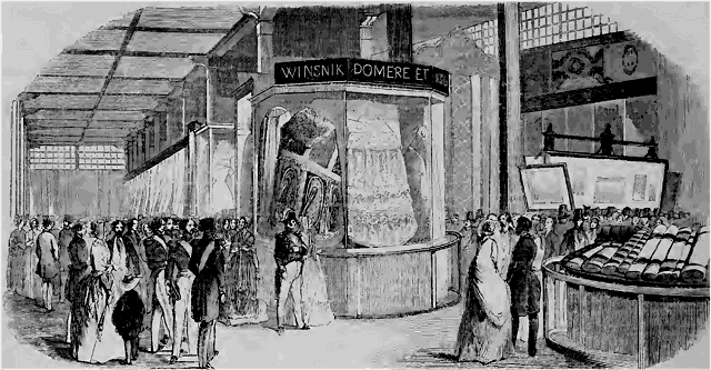 Nous voudrions pouvoir envoyer nos lecteurs dans la galerie des tissus; mais aujourd'hui plus que jamais, cela leur est interdit; des cordes en écartent les curieux; c'est là que l'orage a fait ses dégâts; les riches étoffes aux couleurs éclatantes, les fines soieries, les lingeries précieuses, ont plus ou moins souffert de la légèreté des constructions, combinée avec la violence de la grêle.