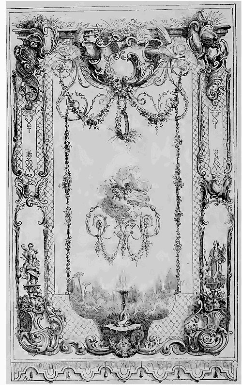 Après les draps, une des branches les plus importantes de l'industrie des laines est la fabrication des tapis. Ici nous retrouvons l'homme qui, depuis longtemps, est à la tête de cette industrie, M. Sallandrouze, dont les magnifiques produits ne le cèdent pas cette année, pour la vivacité des couleurs et la grâce des dessus, à ce qu'ils étaient aux expositions précédentes. Entre ses mains et entre celles des Chenavard et des Couder, le métier est devenu un art, et le bon marche auquel ils sont arrivés, par une distribution intelligente du travail, rend les tapis accessibles à toutes les fortunes; et l'on sait que c'est là, dans nos idées, le criterium du progrès d'une industrie. Nous aimons à constater que, sous ce point de vue, l'usage des tapis jaspés, moquettes, veloutées, tend à se généraliser, et que les dessins, même pour les qualités inférieures, sont de bon goût, et le mélange des couleurs intelligent. En général, rien de heurté dans les lignes, rien de criant pour l'œil, telles sont les qualités remarquables des tapis que nous avons vus à l'exposition, exception faite de la bonté de la matière première. Nous donnons le dessin d'un de ceux dont nous avons le plus admiré la composition et la nuance habile des couleurs. Il sort de la manufacture d'Aubusson. C'est une portière style Pompadour dont le dessin est dû à un habile artiste, M. Jullien.