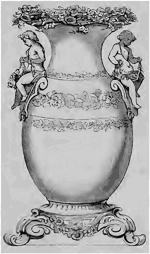 Au jugement du jury de 1839, M. Discry excelle dans la composition des fonds, la pose des couleurs par immersion et la formation des réserves. Cette année, l'exposition de M. Talmoure prouve que la fabrication n'a pas dépéri entre ses mains. Nous donnons à nos lecteurs un vase, style Louis XV, qui est d'une belle exécution, un flacon, imitation de boccaro chinois. Mais la pièce capitale est un grand vase de porcelaine, monté en bronze doré, exécuté par M. Lerolle. Et, à propos de ces derniers fabricants, qui avaient été si honorablement remarqués à l'exposition de 1831, nous demanderons comment il se fait qu'ils ne paraissent cette année que sous le patronage d'un fabricant de porcelaines, et nous regrettons qu'ils n'aient pas cru devoir affronter par eux-mêmes et pour leur propre compte le jugement du public et du jury.