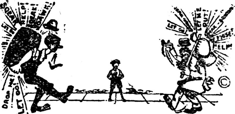 Another reason was because being the youngest of a family of four, the older members being all girls, he was regarded by his mother and sisters as the baby of the family, and they wouldn't hear to his making any change in his attire. He was only a baby in name, however, for there wasn't a pluckier young chap of his years in his neighborhood, or in the city for that matter. The boys in his block, who knew him well, and those employed in the vicinity of Mr. Bacon's store, downtown, often made his knickerbockers the butt of their witticism, but Dick was a self-reliant, independent youth, and he didn't care a rap for the fun and criticism that was directed at his apparel. He surprised the downtown lads by polishing off a couple of them who got too gay on the subject, which made the rest rather shy about tackling him, since it was apparent that he knew how to use his fists if forced to call upon them. When Dick followed his employer into his private office the merchant pointed at the chair beside the desk, so the office boy sat down and awaited developments.