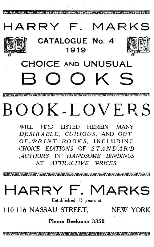 Title: Harry F. Marks Catalogue No. 4, 1919