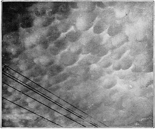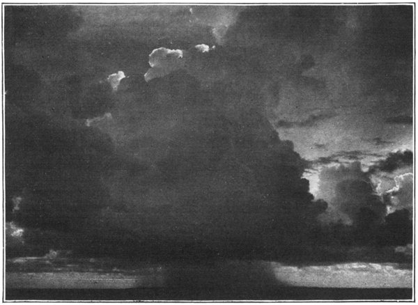 Water vapor—i. e., water in an invisible gaseous form—is always present in the atmosphere, but its amount is subject to wide fluctuations. An important fact in this connection is that, at any given temperature, the air can hold only a definite amount of this vapor. This maximum amount increases rapidly with temperature. When the air is fully charged with water vapor it is said to be “saturated.” Properly speaking, the temperature limits the amount of the vapor that can occur in a given space, regardless of the presence of the other constituents of air, and in scientific language it is the vapor itself that is said to be saturated, and not the air; but in a popular book about the atmosphere, where much has to be said about atmospheric water vapor, adherence to scientific usage in this matter invariably leads to awkward complications. Speaking, then, in familiar terms—when the air is saturated with water vapor, a fall in temperature causes some of the vapor to condense in visible form, as cloud, fog, rain, dew, snow, hail, etc. As the sole source of these various forms of moisture, and on account of the important part it plays in15 many atmospheric processes, water vapor is, from a meteorological point of view, the most interesting constituent of the atmosphere.