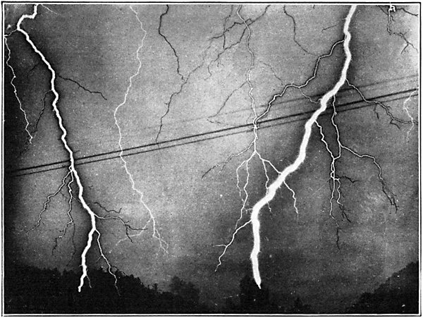 Turning, now, to the more abundant constituents of the atmosphere, we find that oxygen and nitrogen differ strikingly from each other in the fact that, while the former has a strong chemical affinity for nearly all other elements, the latter is chemically inert, having little tendency to unite directly with13 other elements, though by indirect processes, and chiefly through the agency of plants and animals, a large number of nitrogen compounds are produced. Oxides of nitrogen are formed directly from the atmospheric gases by lightning discharges, and these unite with the moisture of the air to form nitric and nitrous acids. A certain amount of ammonia (a compound of nitrogen and hydrogen) may also be formed by lightning from nitrogen and atmospheric water, but most of the ammonia in the air is derived from the decomposition of plant and animal matters. The compounds of nitrogen that occur in the air are washed down by rain in considerable quantities. Analyses of rain water made in different parts of the world show from one to nine pounds of such substances per acre per annum.