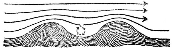 Near the surface of the earth the proportions of the more abundant gases mixed together in the air are remarkably constant. Ignoring a variable admixture of water vapor, oxygen is always about 21 per cent, by volume, and nitrogen about 78 per cent. The remaining 1 per cent is mainly argon. At great altitudes, however, these percentages no longer obtain. The atmospheric gases differ greatly among themselves in weight, and in the high atmosphere, where they are not mixed by the winds, as they are below, the heavier tend to settle to the bottom and11 the lighter to float on top, as oil floats on water. It is calculated that at a height of thirty miles above sea level the percentage of nitrogen is about 86½ and of oxygen only 10, while at the same altitude the gas hydrogen, which at low levels constitutes less than one-hundredth of 1 per cent of the atmosphere amounts to more than 2½ per cent. Going higher, the percentage of hydrogen is supposed to increase rapidly, until, at an altitude of forty-eight miles, the atmosphere is more than half hydrogen, and at eighty miles above the earth this gas forms 99 per cent of the whole. These figures are not necessarily final; for some authorities believe that the atmosphere contains an unknown gas lighter than hydrogen, while others think that the hydrogen found in the lower air enters into chemical combinations before it can reach the higher levels; but it is beyond doubt that the composition of the upper atmosphere is quite different from that of the lower.