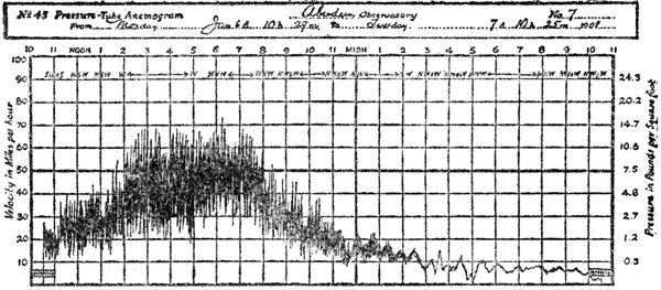 The sounding balloon, already mentioned, is one of the four principal types of aerial vehicle used in the study of the atmosphere, the others being the21 pilot balloon, the captive balloon, and the kite. The sounding balloon, or ballon-sonde, is a small free balloon that carries no human aeronaut, but instead a set of superhuman meteorological instruments, which register the temperature, the barometric pressure, and sometimes the humidity continuously and automatically through the whole course of their journey. The record is traced on a revolving drum or disk, usually coated with lampblack. In its commonest form the balloon is made of india-rubber, and when launched is inflated to less than its full capacity with hydrogen. As it rises to regions of diminished air pressure it gradually expands, and it finally bursts at an elevation determined approximately in advance. A sort of parachute, or sometimes an auxiliary balloon, insures a gentle fall to the ground. Attached to the apparatus there is generally a ticket offering the finder a reward for its return, and giving instructions as to packing and shipping. Sooner or later it generally comes back. In fact, the large percentage of records recovered, even in sparsely settled countries, is not the least remarkable feature of this novel method of research. Thus, of seventy-two balloons sent up by a Franco-Swedish expedition in Lapland, forty-one were eventually recovered with their instruments. One of these fell into a lake and was found after three years.