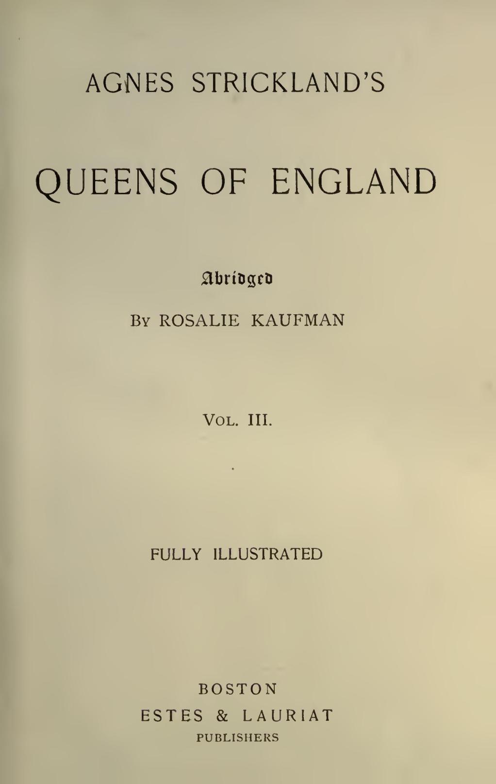 Title: Agnes Strickland's Queens of England, Vol. 3. (of 3)