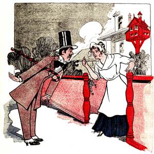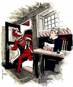 On a certain forenoon the door of the shop opened so abruptly that the little brass bell made a furious jingling.