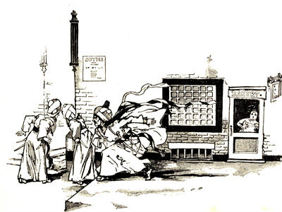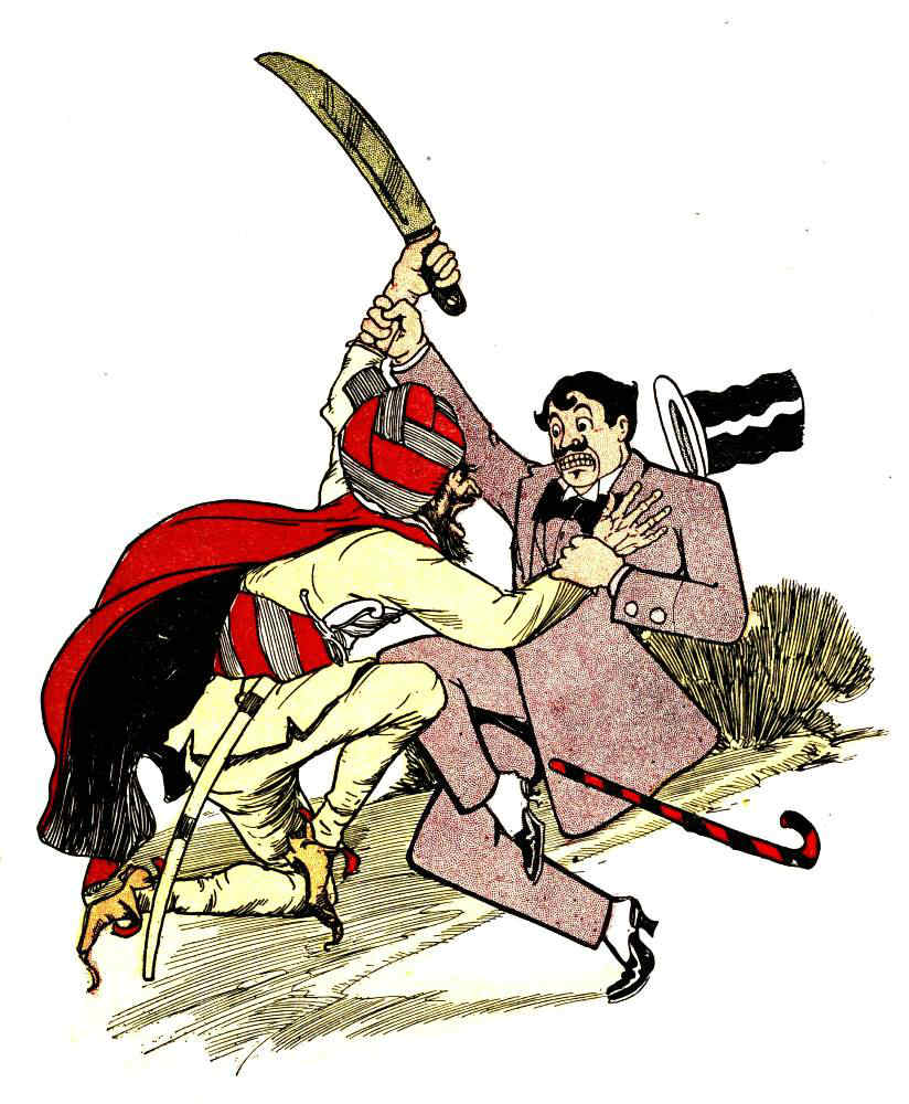 Things did not startle Madame easily; but the Arab's queer behavior aroused in her a mild curiosity, and while she stood looking through the glass of the door, and wondering what had excited the man, she saw two strange forms glide [Pg 14]past her shop with a stealthy motion and proceed in the same direction Ali Dubh had taken.