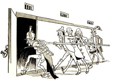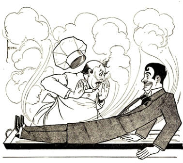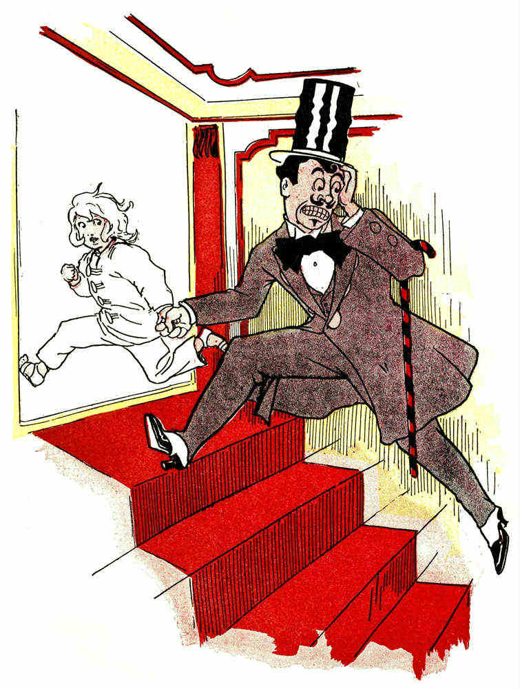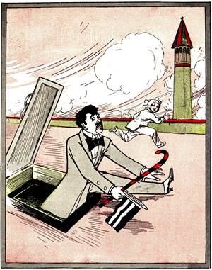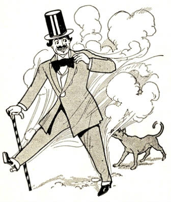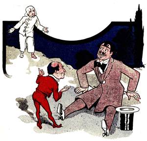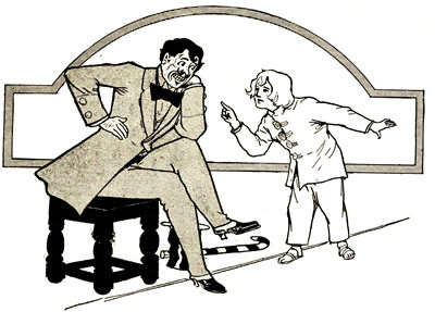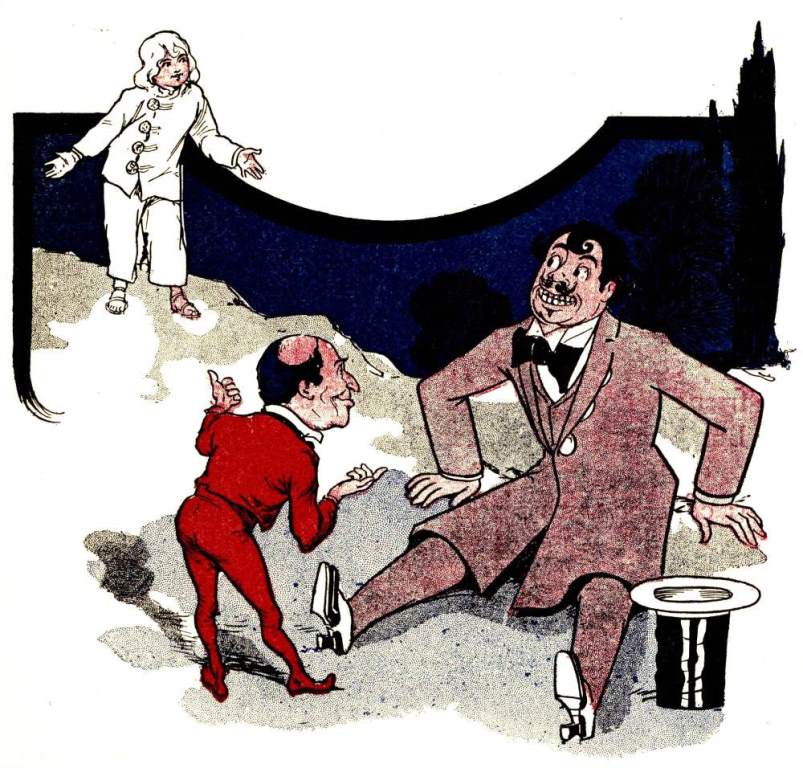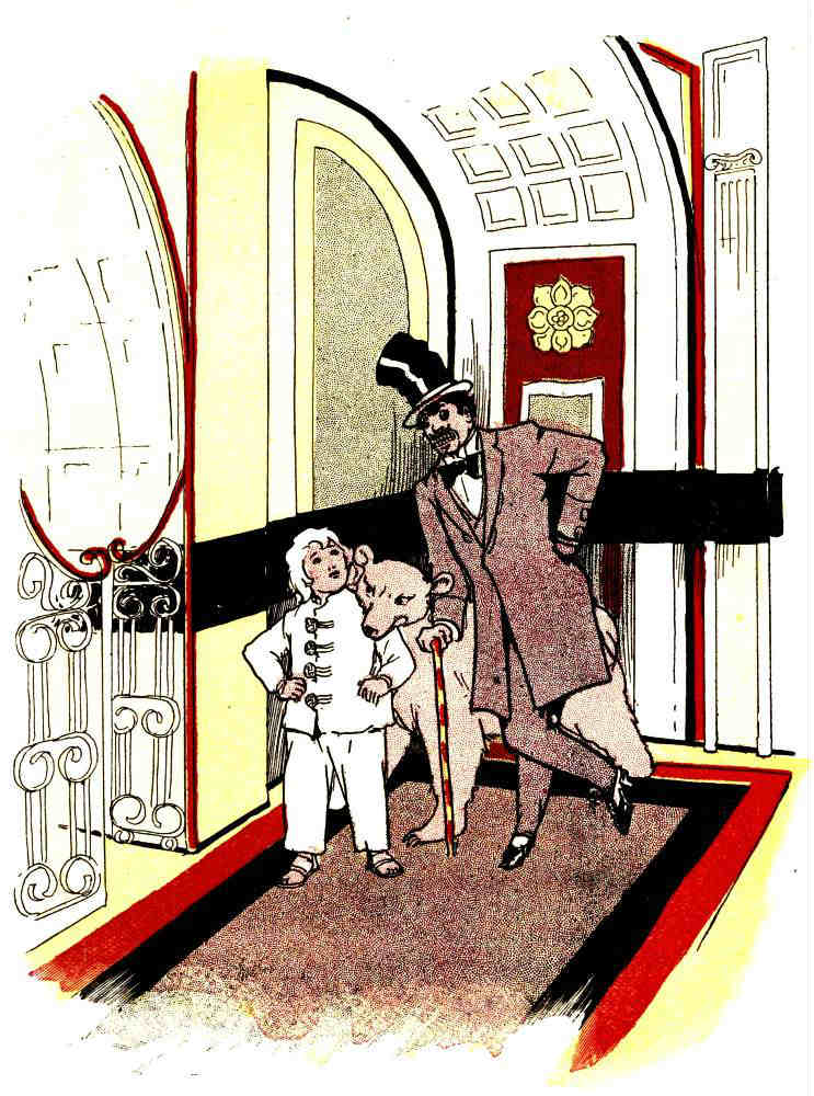 Ah, but Monsieur Jules Grogrande was a true artist, although a baker! Under his skillful hands the gingerbread man slowly but surely took form; [Pg 32]and the form was fully as large as that of a well-grown fourteen-year-old boy. But it was by no means a boy that Monsieur was forming with such care; it was, rather, the figure of a typical French gentleman, such as may seldom be met with elsewhere than on the boulevards of Paris. It was interesting to watch the figure grow: interesting, of course, to Monsieur Jules, as there was no one else in the bake-room to see.