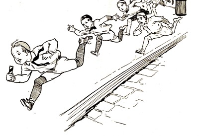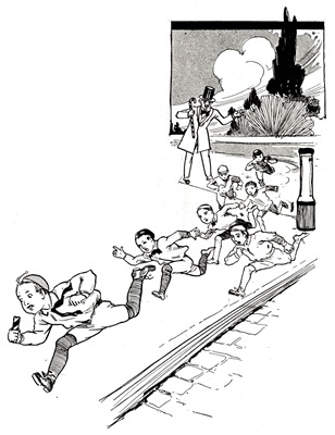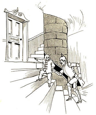 Next moment he dashed away at full speed, even [Pg 13]forgetting to close the door; so Madame came from behind the counter and did it herself. She delayed a moment to gaze at the figure of Ali Dubh racing up the street. Then he turned the corner of an alley and disappeared from view.