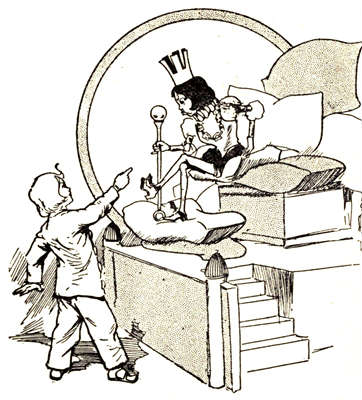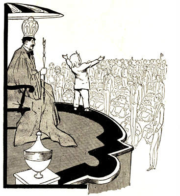 There was no disputing the fulfillment of the prophecy; so all bowed humbly before John, whom Chick introduced to his subjects in a shrill, childish voice as "King Dough the First, ruler of the Twin Kingdoms of Hiland and Loland."