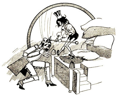 "To be sure the castle is vacant at present, for our King is long since dead," the soldier replied. "But we are patiently awaiting the arrival of his successor. There is a prophecy that our next ruler will be a King who is wise and just, but not made of flesh and blood, and although this seems [Pg 304]an impossible thing, our people hope that the prophecy will some day be fulfilled."