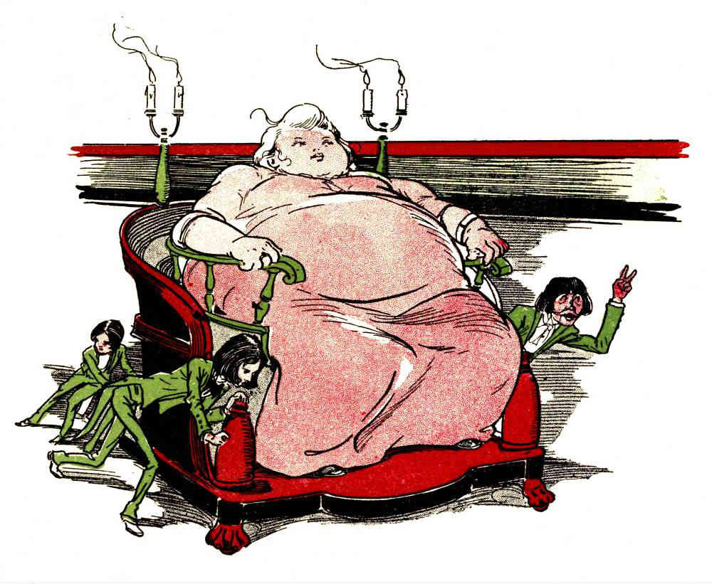 The pains were suddenly eased, and Madame began to feel as light and airy as a fairy, in spite of her great mass of flesh.