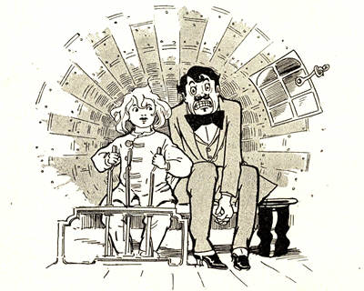 First, he lighted the big swinging lamps, which made the room bright as day, and then he built the fires in the great furnaces. Presently these last were roaring in a very business-like manner, and as soon as he heard the roar Monsieur Jules began to whistle. It was his custom, and kept him from getting lonesome while he worked.