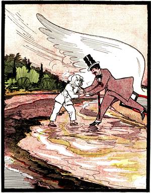 "Why, to-day is the Fourth of July," he thought, "and that is a National Holiday. I think I will make a fine gingerbread man, such as I used to make in Paris, and put it in the shop window to attract attention. These Americans like enterprise, and they have never seen a gingerbread man, for I have not made one since I came to this country."