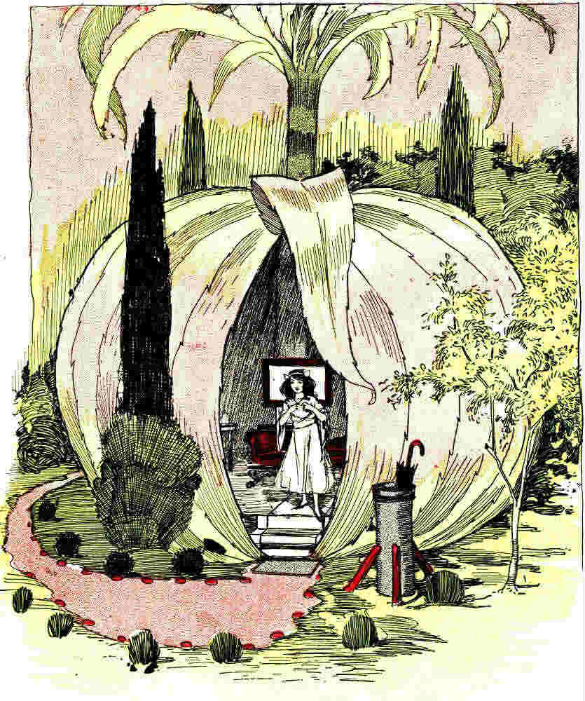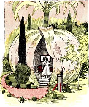 "How much did the Arab say to put in the water?" she wondered, pausing in perplexed thought. "I declare, I've actually forgotten! But he said it was sure to cure me, [Pg 25]so I may as well use all the flask contains. For, after I am cured, I shall not need any more of it."