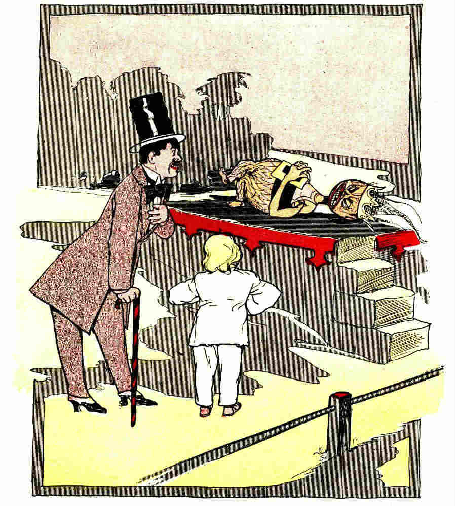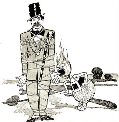 In this book Mr. Baum has told in his inimitable style, the remarkable tale of the Woggle-Bug's love affairs. It will be enjoyed by every one—men, women and children. Different from any other book. Novel in story, pictures, size, printing and general make-up. Illustrated on every page with grotesque pictures by Ike Morgan.