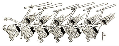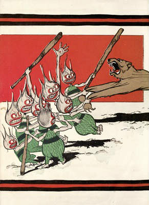 So the tall and slender people trooped in at one door and the short and fat people trooped in at the other; and all gazed with awe and reverence at the strange form of the gingerbread king, who [Pg 313]was surely not flesh and blood, and might easily be a wise and just ruler.
