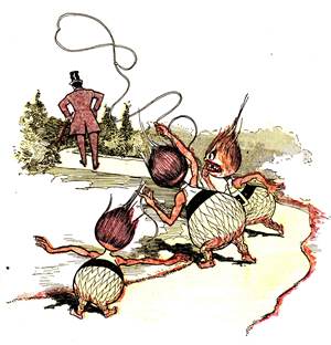 Looking along the streets of the city of Lo, Chick saw that all the people were as short and fat as this soldier, and that they waddled like ducks when they walked. But they seemed as busy as bees in a hive, and appeared to be happy and contented; so the child could not decide which was [Pg 307]the finest country—that of the short people or that of the tall ones. Both cities seemed prosperous, and on both sides of the wall the island was charmingly beautiful.