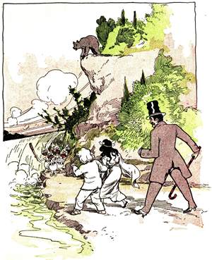 Para Bruin also became a great favorite in the two cities, and the tall and short folks loved to watch him stand upon the high wall that divided the two nations, from which he would leap to the ground and immediately bound back again to his station on the wall. He was always good-natured and cheerful, quite winning the hearts of the Hilanders by poking fun at the Lolanders, and afterward delighting the Lolanders by jeering at the Hilanders.