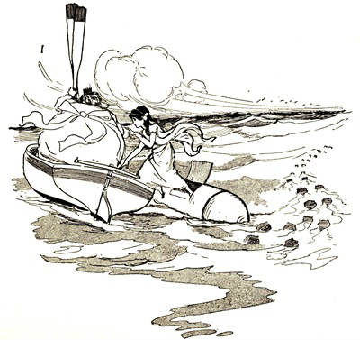 "Let me see," she murmured; "this must be [Pg 23]the flask which the Arab first drew from his pocket. No—I think this was the one." But the more she hesitated the more confused she became, and in the end she told herself honestly that she had not the faintest clue to guide her in knowing which flask contained the Essence of Vitality and which the cure for rheumatism.