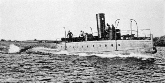 One form of these torpedoes was attached to the end of a spar or pole which was rigged out from the bow of a launch or vessel so that it could be thrust under the enemy’s vessel, and the detonators of such spar torpedoes were not only connected with electric generators, so that they could be fired at will, but they, in common with mines, were frequently provided with a system of levers so arranged that the enemy’s vessel fired the torpedoes and mines automatically as it came in contact with the levers. It was with such a contact-spar torpedo, containing thirty-three pounds of gun cotton, that the schooner Joseph Henry was blown up in Newport Harbor in 1884.
