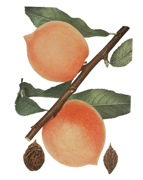 In all of these fruit-books it has been difficult to decide what varieties merit color-plates and full descriptions. Briefly, the choice of sorts to be illustrated and described in detail has been determined by the following considerations: (1) By the value of the variety for home or commercial orchards; (2) the probable value if the peach is a new sort on probation; (3) its desirability as a parent in breeding new peaches or to show combinations of varieties, to illustrate new characters, or to show the range in variation—in a word to enlighten the peach-breeder; (4) not a few varieties are described and illustrated to show the trend of peach-evolution—for their historical value; (5) to show relationships of varieties.