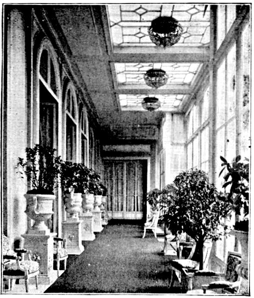 There is much of interest in the drawing-room, with its fine statues by P. MacDowell, R.A., its family portraits intermingled with great bowls of winter blossoms and grasses gathered from the adjoining fields, its many artistic treasures—not omitting the tiny canvas which the artist painted at the age of seventy.